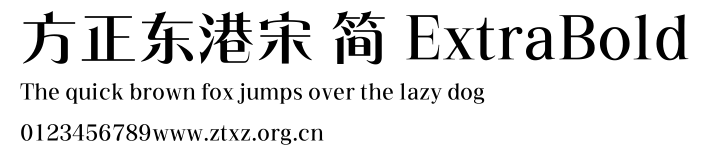 方正东港宋 简 ExtraBold.ttf是由字体厂商(设计师)方正出品的一款字体.方正字库隶属于北京北大方正电子有限公司(简称方正电子)。方正电子是专业从事中文字库开发的厂商,现拥有各种中、西文以及多民族文种字库数百款。作为享誉全球的方正中文电子出版系统的重要组成部分,方正字库一向以字款丰富,品质精良,适用面广,能迅速满足客户需求而在专业出版、印刷领域中享有盛誉。方正电子一向以推动中文字库技术进步,促进中文印刷字体的发展为己任,每年推出的创新字体都在十款以上。同时,方正电子还积极参与中国国家标准和国际ISO组织相关标准的制订,如GBK、GB18030、ISO/IEC-10646等。方正字库字款丰富、字形美观、性能稳定、适应面广,运行速度快,且存贮容量小。全面支持GB、GBK、GB18030、BIG-5以及JIS、KSC等编码体系,可以提供TrueType,PostScript Type1、Type0、CID等各种通用格式字库。方正字库官网http://www.foundertype.com/index.php/FindFont/index.html?utm_source=zitixiazai