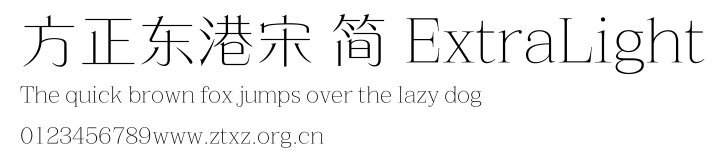 方正东港宋 简 ExtraLight.ttf是由字体厂商(设计师)方正出品的一款字体.方正字库隶属于北京北大方正电子有限公司(简称方正电子)。方正电子是专业从事中文字库开发的厂商,现拥有各种中、西文以及多民族文种字库数百款。作为享誉全球的方正中文电子出版系统的重要组成部分,方正字库一向以字款丰富,品质精良,适用面广,能迅速满足客户需求而在专业出版、印刷领域中享有盛誉。方正电子一向以推动中文字库技术进步,促进中文印刷字体的发展为己任,每年推出的创新字体都在十款以上。同时,方正电子还积极参与中国国家标准和国际ISO组织相关标准的制订,如GBK、GB18030、ISO/IEC-10646等。方正字库字款丰富、字形美观、性能稳定、适应面广,运行速度快,且存贮容量小。全面支持GB、GBK、GB18030、BIG-5以及JIS、KSC等编码体系,可以提供TrueType,PostScript Type1、Type0、CID等各种通用格式字库。方正字库官网http://www.foundertype.com/index.php/FindFont/index.html?utm_source=zitixiazai