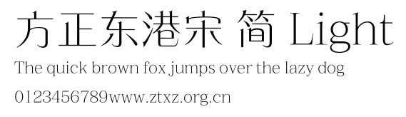 方正东港宋 简 Light.ttf是由字体厂商(设计师)方正出品的一款字体.方正字库隶属于北京北大方正电子有限公司(简称方正电子)。方正电子是专业从事中文字库开发的厂商,现拥有各种中、西文以及多民族文种字库数百款。作为享誉全球的方正中文电子出版系统的重要组成部分,方正字库一向以字款丰富,品质精良,适用面广,能迅速满足客户需求而在专业出版、印刷领域中享有盛誉。方正电子一向以推动中文字库技术进步,促进中文印刷字体的发展为己任,每年推出的创新字体都在十款以上。同时,方正电子还积极参与中国国家标准和国际ISO组织相关标准的制订,如GBK、GB18030、ISO/IEC-10646等。方正字库字款丰富、字形美观、性能稳定、适应面广,运行速度快,且存贮容量小。全面支持GB、GBK、GB18030、BIG-5以及JIS、KSC等编码体系,可以提供TrueType,PostScript Type1、Type0、CID等各种通用格式字库。方正字库官网http://www.foundertype.com/index.php/FindFont/index.html?utm_source=zitixiazai