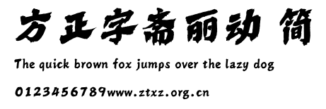 方正字斋丽动 简.ttf是由字体厂商(设计师)方正出品的一款字体.方正字库隶属于北京北大方正电子有限公司(简称方正电子)。方正电子是专业从事中文字库开发的厂商,现拥有各种中、西文以及多民族文种字库数百款。作为享誉全球的方正中文电子出版系统的重要组成部分,方正字库一向以字款丰富,品质精良,适用面广,能迅速满足客户需求而在专业出版、印刷领域中享有盛誉。方正电子一向以推动中文字库技术进步,促进中文印刷字体的发展为己任,每年推出的创新字体都在十款以上。同时,方正电子还积极参与中国国家标准和国际ISO组织相关标准的制订,如GBK、GB18030、ISO/IEC-10646等。方正字库字款丰富、字形美观、性能稳定、适应面广,运行速度快,且存贮容量小。全面支持GB、GBK、GB18030、BIG-5以及JIS、KSC等编码体系,可以提供TrueType,PostScript Type1、Type0、CID等各种通用格式字库。方正字库官网http://www.foundertype.com/index.php/FindFont/index.html?utm_source=zitixiazai