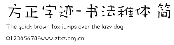 方正字迹-书法稚体 简.ttf是由字体厂商(设计师)方正出品的一款字体.方正字库隶属于北京北大方正电子有限公司(简称方正电子)。方正电子是专业从事中文字库开发的厂商,现拥有各种中、西文以及多民族文种字库数百款。作为享誉全球的方正中文电子出版系统的重要组成部分,方正字库一向以字款丰富,品质精良,适用面广,能迅速满足客户需求而在专业出版、印刷领域中享有盛誉。方正电子一向以推动中文字库技术进步,促进中文印刷字体的发展为己任,每年推出的创新字体都在十款以上。同时,方正电子还积极参与中国国家标准和国际ISO组织相关标准的制订,如GBK、GB18030、ISO/IEC-10646等。方正字库字款丰富、字形美观、性能稳定、适应面广,运行速度快,且存贮容量小。全面支持GB、GBK、GB18030、BIG-5以及JIS、KSC等编码体系,可以提供TrueType,PostScript Type1、Type0、CID等各种通用格式字库。方正字库官网http://www.foundertype.com/index.php/FindFont/index.html?utm_source=zitixiazai