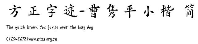 方正字迹-曹隽平小楷 简.ttf是由字体厂商(设计师)方正出品的一款字体.方正字库隶属于北京北大方正电子有限公司(简称方正电子)。方正电子是专业从事中文字库开发的厂商,现拥有各种中、西文以及多民族文种字库数百款。作为享誉全球的方正中文电子出版系统的重要组成部分,方正字库一向以字款丰富,品质精良,适用面广,能迅速满足客户需求而在专业出版、印刷领域中享有盛誉。方正电子一向以推动中文字库技术进步,促进中文印刷字体的发展为己任,每年推出的创新字体都在十款以上。同时,方正电子还积极参与中国国家标准和国际ISO组织相关标准的制订,如GBK、GB18030、ISO/IEC-10646等。方正字库字款丰富、字形美观、性能稳定、适应面广,运行速度快,且存贮容量小。全面支持GB、GBK、GB18030、BIG-5以及JIS、KSC等编码体系,可以提供TrueType,PostScript Type1、Type0、CID等各种通用格式字库。方正字库官网http://www.foundertype.com/index.php/FindFont/index.html?utm_source=zitixiazai