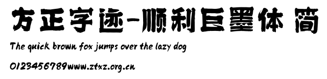 方正字迹-顺利巨墨体 简.ttf是由字体厂商(设计师)方正出品的一款字体.方正字库隶属于北京北大方正电子有限公司(简称方正电子)。方正电子是专业从事中文字库开发的厂商,现拥有各种中、西文以及多民族文种字库数百款。作为享誉全球的方正中文电子出版系统的重要组成部分,方正字库一向以字款丰富,品质精良,适用面广,能迅速满足客户需求而在专业出版、印刷领域中享有盛誉。方正电子一向以推动中文字库技术进步,促进中文印刷字体的发展为己任,每年推出的创新字体都在十款以上。同时,方正电子还积极参与中国国家标准和国际ISO组织相关标准的制订,如GBK、GB18030、ISO/IEC-10646等。方正字库字款丰富、字形美观、性能稳定、适应面广,运行速度快,且存贮容量小。全面支持GB、GBK、GB18030、BIG-5以及JIS、KSC等编码体系,可以提供TrueType,PostScript Type1、Type0、CID等各种通用格式字库。方正字库官网http://www.foundertype.com/index.php/FindFont/index.html?utm_source=zitixiazai