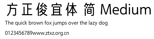 方正俊宜体 简 Medium.ttf是由字体厂商(设计师)方正出品的一款字体.方正字库隶属于北京北大方正电子有限公司(简称方正电子)。方正电子是专业从事中文字库开发的厂商,现拥有各种中、西文以及多民族文种字库数百款。作为享誉全球的方正中文电子出版系统的重要组成部分,方正字库一向以字款丰富,品质精良,适用面广,能迅速满足客户需求而在专业出版、印刷领域中享有盛誉。方正电子一向以推动中文字库技术进步,促进中文印刷字体的发展为己任,每年推出的创新字体都在十款以上。同时,方正电子还积极参与中国国家标准和国际ISO组织相关标准的制订,如GBK、GB18030、ISO/IEC-10646等。方正字库字款丰富、字形美观、性能稳定、适应面广,运行速度快,且存贮容量小。全面支持GB、GBK、GB18030、BIG-5以及JIS、KSC等编码体系,可以提供TrueType,PostScript Type1、Type0、CID等各种通用格式字库。方正字库官网http://www.foundertype.com/index.php/FindFont/index.html?utm_source=zitixiazai
