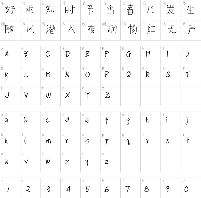 方正手迹-萌芽体.ttf是由字体厂商(设计师)方正出品的一款字体.方正字库隶属于北京北大方正电子有限公司(简称方正电子)。方正电子是专业从事中文字库开发的厂商,现拥有各种中、西文以及多民族文种字库数百款。作为享誉全球的方正中文电子出版系统的重要组成部分,方正字库一向以字款丰富,品质精良,适用面广,能迅速满足客户需求而在专业出版、印刷领域中享有盛誉。方正电子一向以推动中文字库技术进步,促进中文印刷字体的发展为己任,每年推出的创新字体都在十款以上。同时,方正电子还积极参与中国国家标准和国际ISO组织相关标准的制订,如GBK、GB18030、ISO/IEC-10646等。方正字库字款丰富、字形美观、性能稳定、适应面广,运行速度快,且存贮容量小。全面支持GB、GBK、GB18030、BIG-5以及JIS、KSC等编码体系,可以提供TrueType,PostScript Type1、Type0、CID等各种通用格式字库。方正字库官网http://www.foundertype.com/index.php/FindFont/index.html?utm_source=zitixiazai