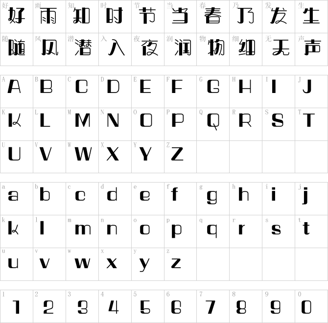 方正奇妙体简繁ExtraBold.ttf是由字体厂商(设计师)方正出品的一款字体.方正字库隶属于北京北大方正电子有限公司(简称方正电子)。方正电子是专业从事中文字库开发的厂商,现拥有各种中、西文以及多民族文种字库数百款。作为享誉全球的方正中文电子出版系统的重要组成部分,方正字库一向以字款丰富,品质精良,适用面广,能迅速满足客户需求而在专业出版、印刷领域中享有盛誉。方正电子一向以推动中文字库技术进步,促进中文印刷字体的发展为己任,每年推出的创新字体都在十款以上。同时,方正电子还积极参与中国国家标准和国际ISO组织相关标准的制订,如GBK、GB18030、ISO/IEC-10646等。方正字库字款丰富、字形美观、性能稳定、适应面广,运行速度快,且存贮容量小。全面支持GB、GBK、GB18030、BIG-5以及JIS、KSC等编码体系,可以提供TrueType,PostScript Type1、Type0、CID等各种通用格式字库。方正字库官网http://www.foundertype.com/index.php/FindFont/index.html?utm_source=zitixiazai