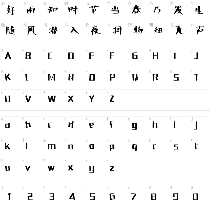 方正手迹-笨黑体.ttf是由字体厂商(设计师)方正出品的一款字体.方正字库隶属于北京北大方正电子有限公司(简称方正电子)。方正电子是专业从事中文字库开发的厂商,现拥有各种中、西文以及多民族文种字库数百款。作为享誉全球的方正中文电子出版系统的重要组成部分,方正字库一向以字款丰富,品质精良,适用面广,能迅速满足客户需求而在专业出版、印刷领域中享有盛誉。方正电子一向以推动中文字库技术进步,促进中文印刷字体的发展为己任,每年推出的创新字体都在十款以上。同时,方正电子还积极参与中国国家标准和国际ISO组织相关标准的制订,如GBK、GB18030、ISO/IEC-10646等。方正字库字款丰富、字形美观、性能稳定、适应面广,运行速度快,且存贮容量小。全面支持GB、GBK、GB18030、BIG-5以及JIS、KSC等编码体系,可以提供TrueType,PostScript Type1、Type0、CID等各种通用格式字库。方正字库官网http://www.foundertype.com/index.php/FindFont/index.html?utm_source=zitixiazai