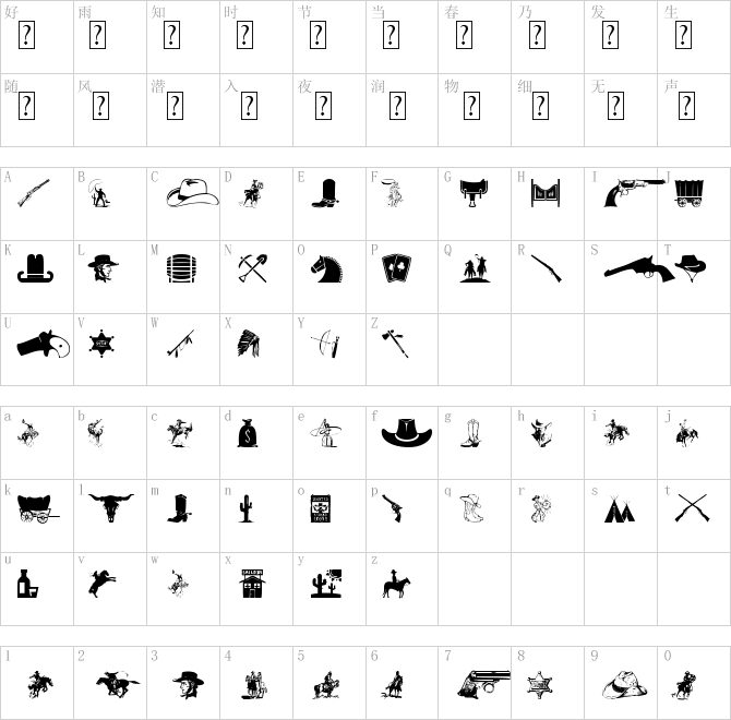 Wild-West-Icons.ttf下载,Wild-West-Icons.ttf下载,ttf字体下载,字体格式:ttf,字体大小:0.35MB。