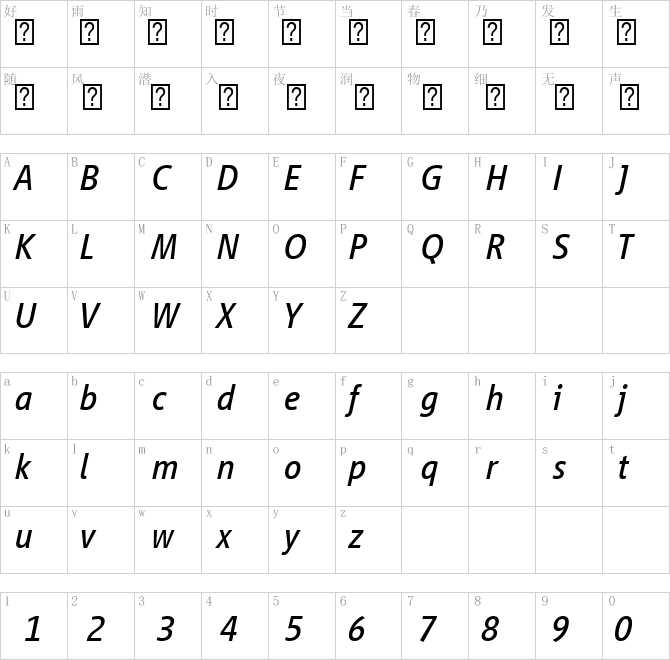 Vialog-LT-Com-Italic.ttf字符映射表