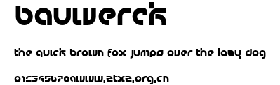版权信息:bauwerck - made & designed by rob janssen a.k.a. yoozer. site : http://yoozer.shodown.net. font info : unlimited free use (yes, that means it's totally free!). would be nice if you'd design something really neat with it and let me know about it. have fun