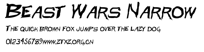 Beast Wars Narrow.ttf下载,Beast Wars Narrow.ttf下载,ttf字体下载,字体格式:ttf,字体大小:0.04MB。
