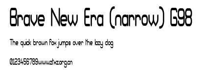 Brave New Era (narrow) G98.ttf下载,Brave New Era (narrow) G98.ttf下载,ttf字体下载,字体格式:ttf,字体大小:0.05MB。