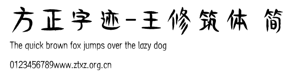 方正字迹-王修筑体 简.ttf是由字体厂商(设计师)方正出品的一款字体.方正字库隶属于北京北大方正电子有限公司(简称方正电子)。方正电子是专业从事中文字库开发的厂商,现拥有各种中、西文以及多民族文种字库数百款。作为享誉全球的方正中文电子出版系统的重要组成部分,方正字库一向以字款丰富,品质精良,适用面广,能迅速满足客户需求而在专业出版、印刷领域中享有盛誉。方正电子一向以推动中文字库技术进步,促进中文印刷字体的发展为己任,每年推出的创新字体都在十款以上。同时,方正电子还积极参与中国国家标准和国际ISO组织相关标准的制订,如GBK、GB18030、ISO/IEC-10646等。方正字库字款丰富、字形美观、性能稳定、适应面广,运行速度快,且存贮容量小。全面支持GB、GBK、GB18030、BIG-5以及JIS、KSC等编码体系,可以提供TrueType,PostScript Type1、Type0、CID等各种通用格式字库。方正字库官网http://www.foundertype.com/index.php/FindFont/index.html?utm_source=zitixiazai