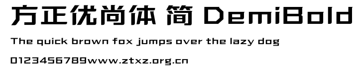 方正优尚体 简 DemiBold.ttf是由字体厂商(设计师)方正出品的一款字体.方正字库隶属于北京北大方正电子有限公司(简称方正电子)。方正电子是专业从事中文字库开发的厂商,现拥有各种中、西文以及多民族文种字库数百款。作为享誉全球的方正中文电子出版系统的重要组成部分,方正字库一向以字款丰富,品质精良,适用面广,能迅速满足客户需求而在专业出版、印刷领域中享有盛誉。方正电子一向以推动中文字库技术进步,促进中文印刷字体的发展为己任,每年推出的创新字体都在十款以上。同时,方正电子还积极参与中国国家标准和国际ISO组织相关标准的制订,如GBK、GB18030、ISO/IEC-10646等。方正字库字款丰富、字形美观、性能稳定、适应面广,运行速度快,且存贮容量小。全面支持GB、GBK、GB18030、BIG-5以及JIS、KSC等编码体系,可以提供TrueType,PostScript Type1、Type0、CID等各种通用格式字库。方正字库官网http://www.foundertype.com/index.php/FindFont/index.html?utm_source=zitixiazai